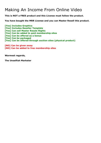 Making An Income From Online Video Mrr Liccense